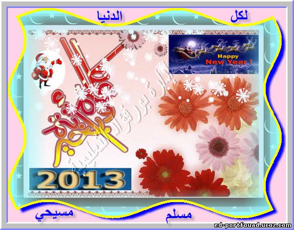 يتقدم الاستاذ/صلاح عثمان مدير إدارة بورفؤاد التعليمية لكل الدنيا وللعاملين بالادارة والمدارس التابعة بالعام الجديد 2013 ويخص التهنئة للأخوة المسيحيين بعيد الميلاد ويتمنى للجميع عام صافي وود دافي