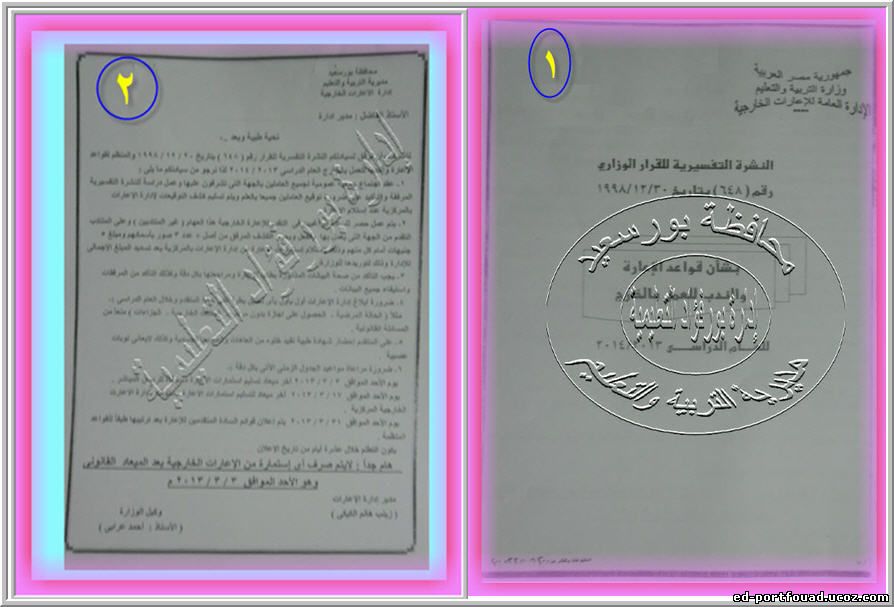 صدرت النشرة التفسيرية للقرار الوزاري رقم ( 648 ) في 30 / 12 / 1998 بشأن قواعد الإعارة والندب للعمل بالخارج للعام الدراسي 2013 / 2014 كالتالي :ـــ